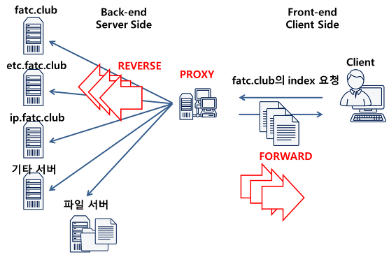 FATC.CLUB에는 3개의 서버가 존재한다.(1) 블로그를 담당하는 fatc.club,(2) 블로그 내용을 구현하여 보여주는 etc.fatc.club 그리고(3) IP 제공 서비스를 수행하는 ip.fatc.club 그리고 모든 요청은 1개의 Proxy 서버를 통해 들어온다. 그러면 어떻게 (1)~(3)을 구분해야 할까. 일반적으로 도메인을 보고 어떤 서버로 해당 요청을 밀어낼지 결정한다. 출처: https://jcdgods.tistory.com/322